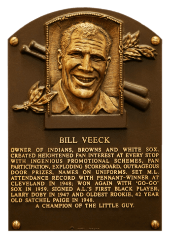 Doby, who led the AL in home runs twice and was a seven-time All Star, couldn’t get into the Hall of Fame until 1998, five decades after that title. His plaque notes that his “exceptional athletic prowess and a staunch constitution led to a successful playing career after integrating the American League,” and the face he became the second Black manager in MLB history (after Frank Robinson) because Veeck, who then owned the Chicago White Sox, made that happen in 1978.