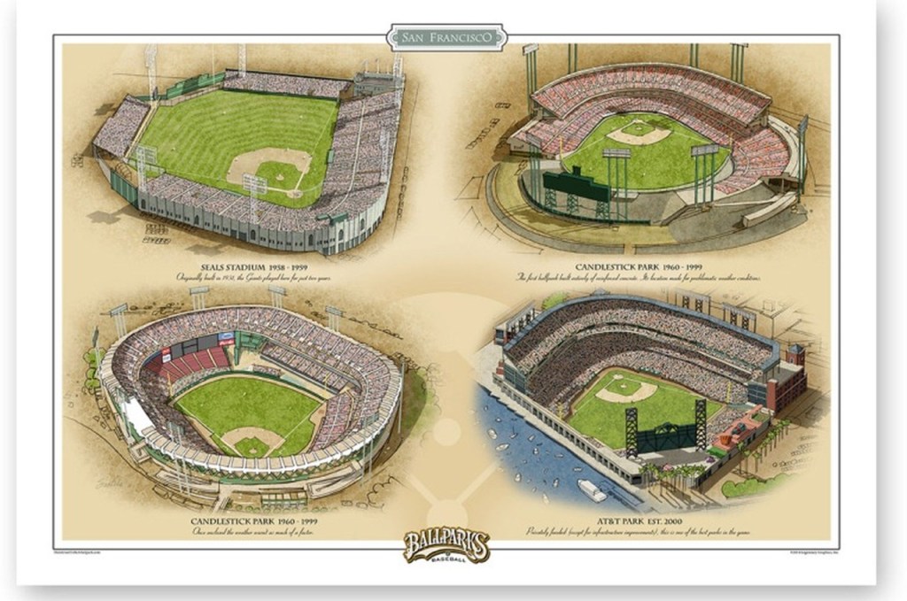 Before revolving telecommunication companies slapped their branding on this turn-of-the-century innovation at 24 Willie Mays Plaza in the South Beach neighborhood of San Francisco, the franchise was forced to propagate what was part of the Candlestick Park conspiracy on Candlestick Point, from 1960 through 1999 (also called 3Com Park in its final four years).