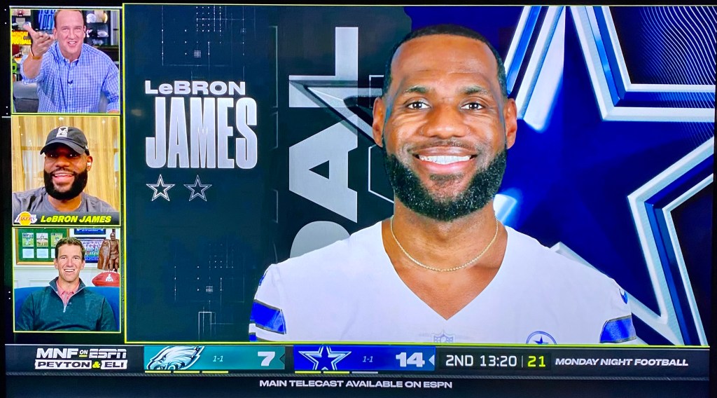 Progress is evident with each new week as it finds its rhythm, its purpose and its value. They figure out when and where to engage in the action versus the plausibility to allow guests to come in and not just sidetrack things but get involved in the conversation of play guessing. Last Monday’s insertion of LeBron James not only gave him the opportunity to talk about his own football career and being once coaxed to try out for the Cowboys and Seahawks, but Peyton and LeBron could relate to how difficult it us to play against a zone defense in the NFL vs. the NBA, and LeBron had the chance to predict a Dallas rushing touchdown based on how he saw the game progressing to that point.