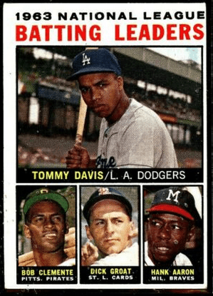 “Henry Aaron was a ballplayer,” Posnanski writes. “He hit for average, hit for power, ran the bases, played good defense, and threw with authority. He did everything well for longer than anyone who ever played the game.” He won two batting titles, four home run titles and four RBI titles, but never won the Triple Crown. In ’63, he was tied for first with Willie McCovey with 44 homers, first in RBIs with 130, but he hit just .263 the last two weeks of the season and finished at .319, tied for third behind batting title winner Tommy Davis of the Dodgers (at .326). That season Aaron also led the league in runs, slugging percentage, total bases, OPS, extra base hits, and (for what it’s worth) offensive WAR at 9.6. The Dodgers’ Sandy Koufax (25-5, 1.88, 306 Ks) was both the Cy Young and NL MVP winner that year.
