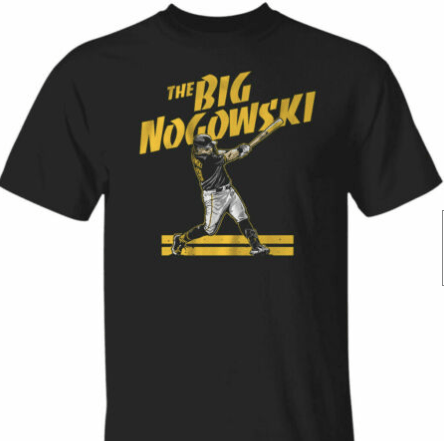 Aug. 15, 2021: Now with the Pittsburgh Pirates (someone wake up Mark Lee for this), where fans have already started embracing him with “The Big Nogowski” T-shirts, Nogowski is asked to pinch-hit in the bottom of the fifth for relief pitcher Kyle Keller. Nogowski strikes out against the Brewers’ Brent Suter.