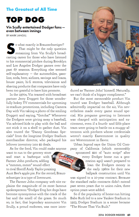 If you scan this story by Dodgers team historian Mark Langill — among the many things he did over the years to document Scully’s impact — you can make the case that Dodger Stadium is “The House That Vin Built.” A house of devotion and worship. As Tommy Lasorda said, blue heaven on earth.