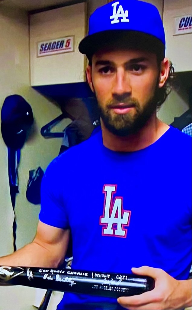 When Charlie Culberson hit a game-winning home run to clinch the NL West for the Dodgers in 2016 – Scully’s final broadcast from Dodger Stadium – the infielder took the bat he used and had Scully sign it. Scully used the words “GOD BLESS” again.