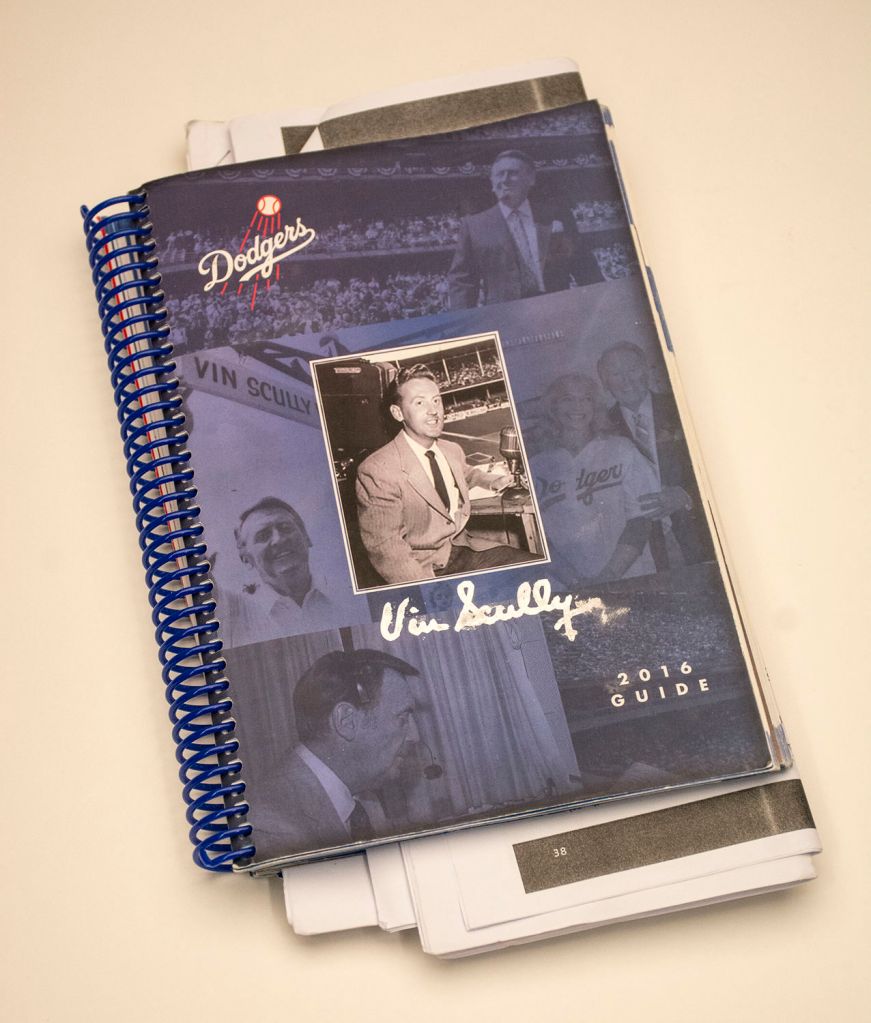 Vin Scully took the pen in his left hand and arched his wrist so that he could shepherd his cursive signature, careful not to smudge.