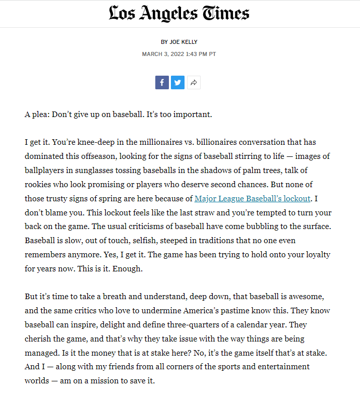== The New York Times found it compelling that Kelly and Manfred connected and posted this prior to the ’23 baseball season.