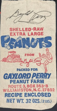== Souvenir bags of peanuts that Gaylord Perry grew on his farm and sold are still available in the collectable world.