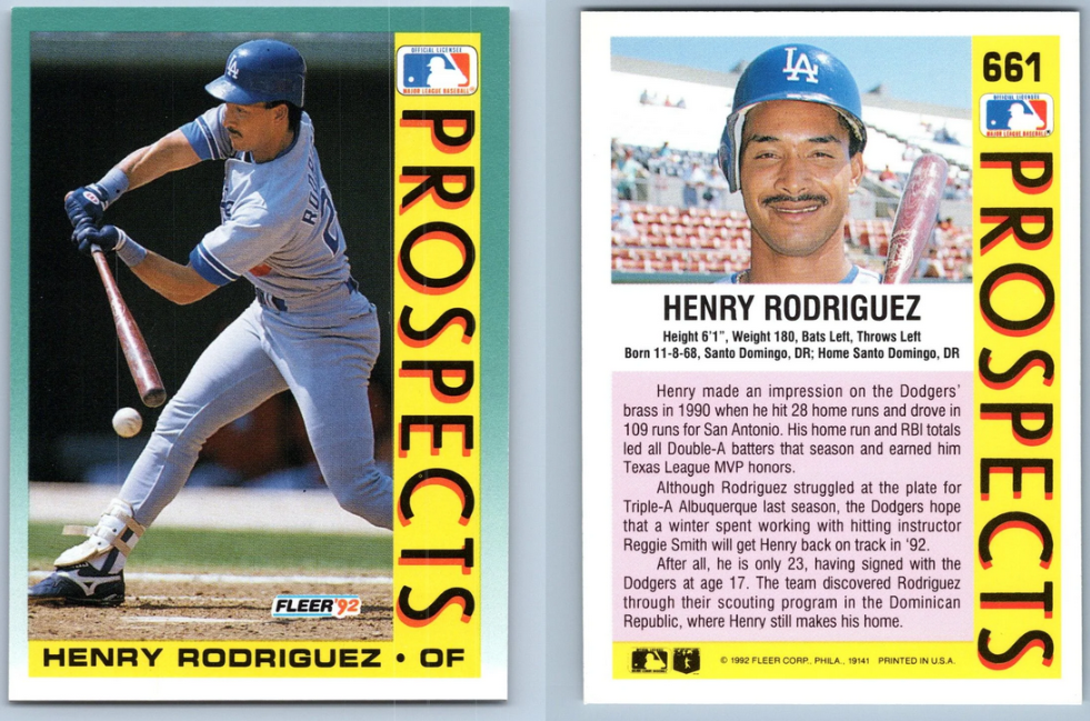Rodriguez came up with the Dodgers as a 17-year-old out of the Dominican Republic, made his major league debut in July 1992, and stay around until the Dodgers decided to trade him to Montreal in May of 1995 with Jeff Treadway in order to get Roberto Kelly and Joey Eischen. Advantage Expos: Rodriguez would hit 36 homers in his first full season in Montreal, make the 1996 N.L. All-Star roster, and hit 139 of his 160 career homers between ’96 and 2000.