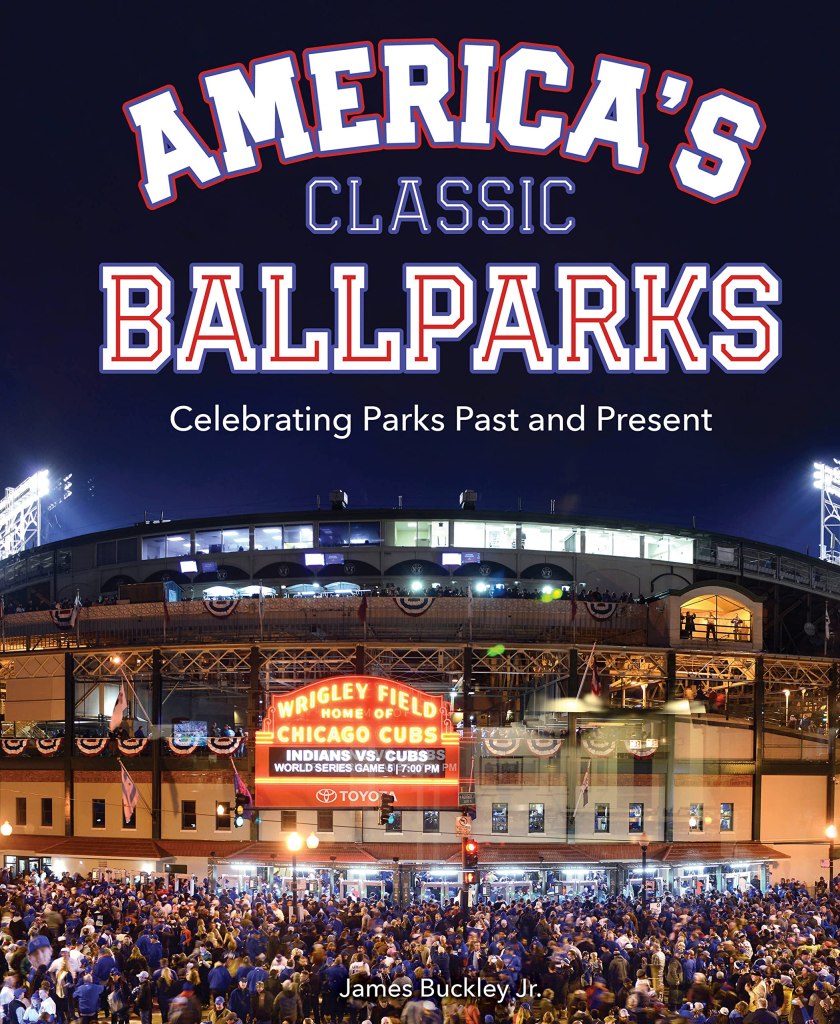 == “America’s Classic Ballparks: Celebrating Parks Past and Present,” by James Buckley (Becker&Mayer Books, 208 pages, $24.99) came out in September, 2022 focusing on nostalgia generated by nine ballparks, including Dodger Stadium, Wrigley Field, the original Yankee Stadium, Fenway Park, Ebbets Field, Tiger Stadium, the Polo Grounds. It then throws in, now quite curiously, Oriole Park at Camden Yards, and Oracle Park, which we weren’t even sure what park that was until we realized it’s the latest bastardization of the San Francisco Giants’ Pacific Bell/Pac Bell Park (2000-03), SBC Park (’04-’04) and AT&T Park (’06-’18) at 24 Willie Mays Plaza and was once also home to the Kraft Fight Hunger Bowl of college football (2002-’13), the XFL’s San Francisco Demons (2001), the UFL’s California Redwoods (2009), and Cal’s football team in 2011.