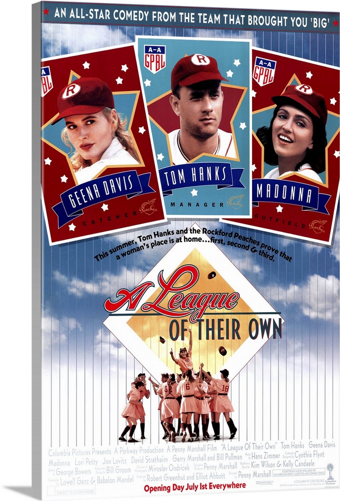 == In “The New York Times Book Of Movies: The Essential 1,000 Films To See,” updated in 2019, it is encouraging to see “A League of their Own” is included on page 611. The entry, based on a review that Vincent Canby in July of ’92, calls the film “one of the year’s most cheerful, most relaxed, most easily enjoyable comedies. It’s a serious film that’s lighter than air, a very funny movie that manages to score a few points for feminism in passing. …Though (it) is an ensemble piece, Mr. Hanks is first among the equals. His Jimmy Dugan is a priceless, very graceful eccentric. With his work here, there can be no doubt that Mr. Hanks is now one of Hollywood’s most accomplished and self-assured actors. Having put on weight for the role, he even looks jowly and over-the-hill. … Not since “Desperately Seeking Susan” has Madonna had a role that fits her public personality as well as Mae, an opinionated, operational fighter who’s not about to pay too much attention to training rules when it comes to men. It’s not a big role, but it is choice. … “A League of Their Own” has its share of obligatory lines. At a sentimental moment, Jimmy Dugan must say, “There’s no crying in baseball.” He must also define the game for the women: “Baseball is what gets inside you. It’s what lights you up.” (The film) is so good that it can accommodate such stuff and still leave one admiring its skill, humor and all-American enthusiasm.”