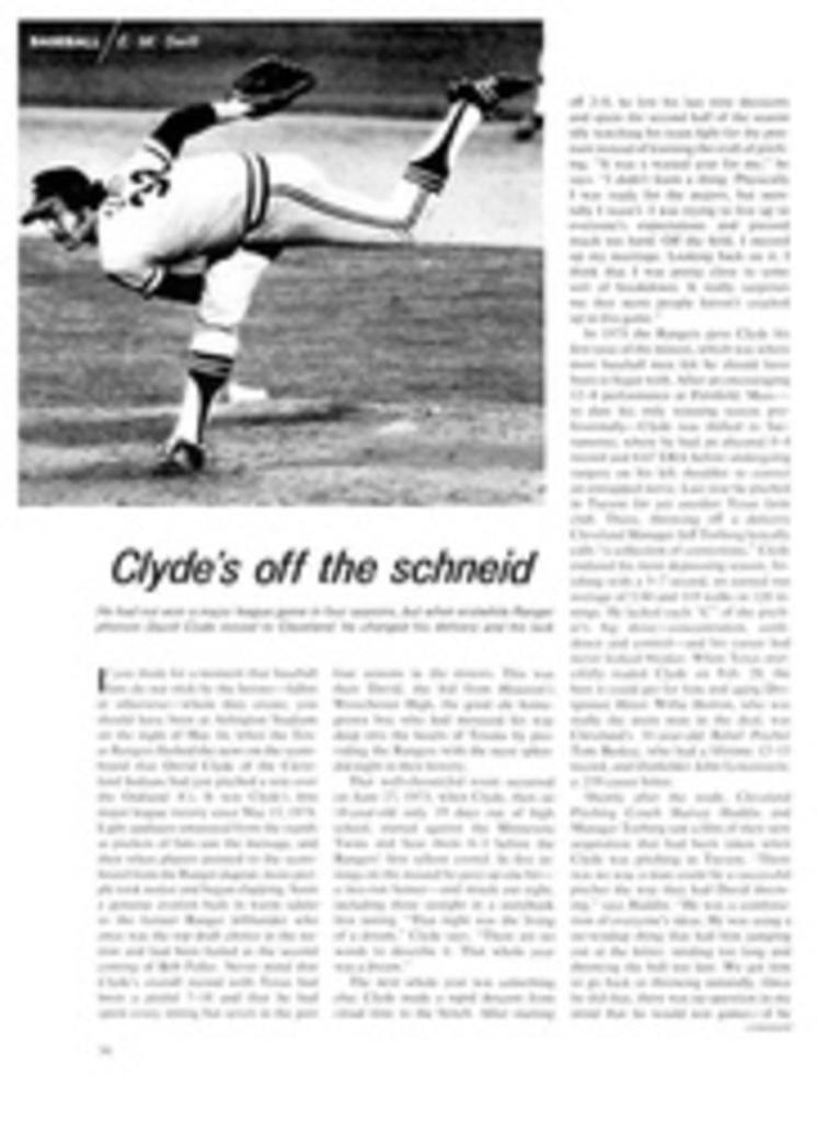 By 1978, there was “Clyde’s Off the Schneid” after he went to rescue his career in Cleveland. The headline wasn’t really accurate. But it rhymed. Sorta. After two years out of the MLB, Clyde threw two more seasons for the Indians, and by ’79 he was done with an 18-33 record and a 4.63 earned run average.