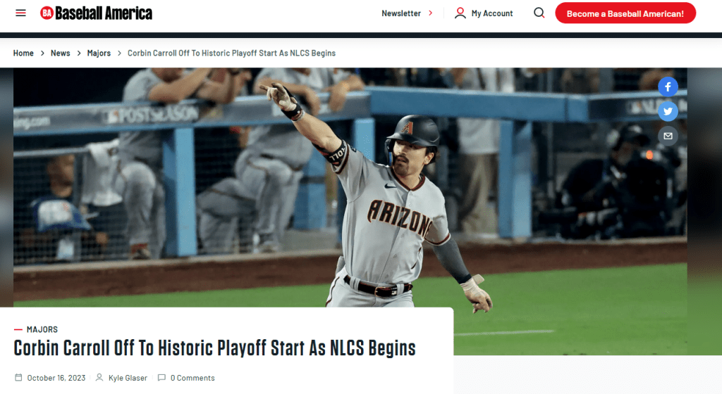 By the time the 2023 season ended, Carroll was named to the NL team for the All Star Game and led the D’backs into the World Series. He won the NL Rookie of the Year award.