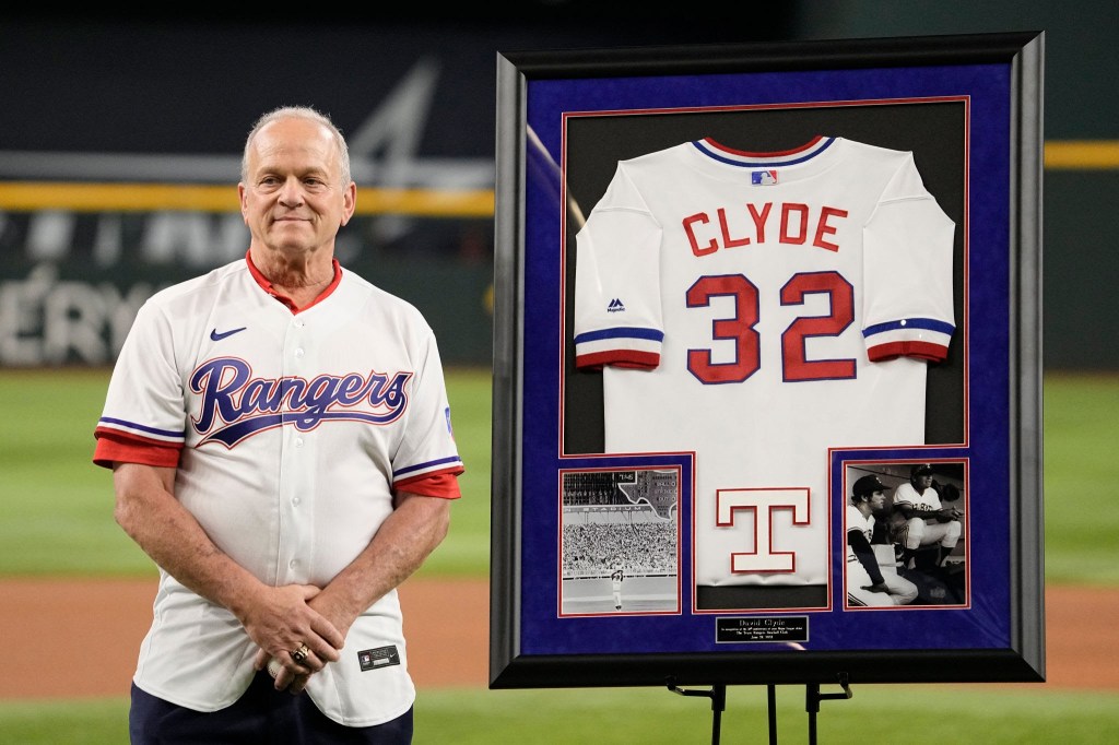 “I am not sure what the deal is, but I am persona non grata in Major League Baseball,” Clyde, who turns 69 on April 22, tells Montgomery. “Even the Texas Rangers do not acknowledge me. I don’t know if this comes back to the pension thing.”