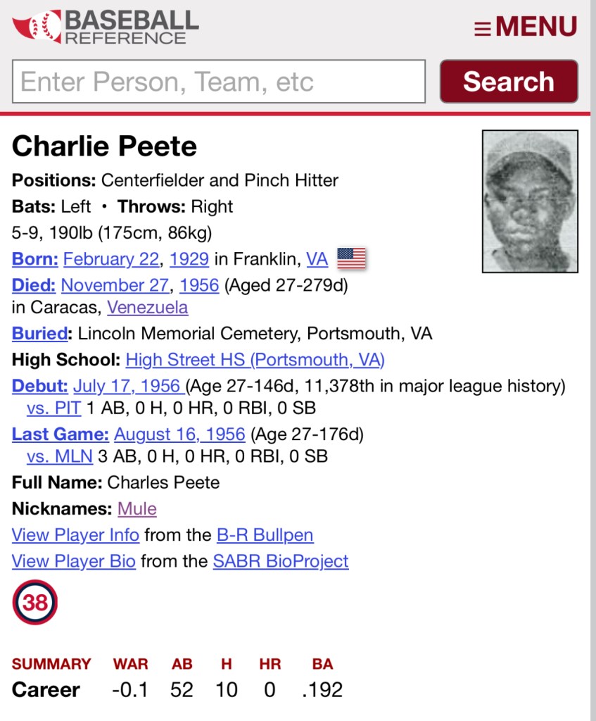 Peete is remembered these days with a plaque at Omaha Stadium where he was at Triple-A, and in his home town of Portsmouth with the Charlie Peete Little League. Here is also Peete’s excellent SABR.com bio as a way to get into this book and remember him as well.
