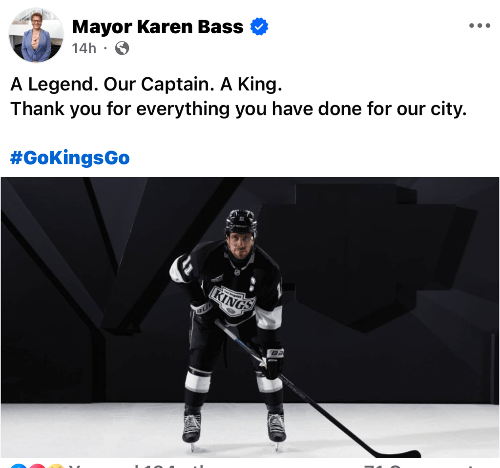 “He’s all about winning, and it’s not about him winning a trophy or him winning a scoring championship,” said Detroit Red Wings coach Todd McLellan, who coached Kopitar for 4 1/2 seasons with the Kings. “It’s about the group being able to win with him. You know he sacrifices things, his own personal accomplishments so teams can win. You hear that about championship captains and leaders all the time and Kopi personifies that.”
