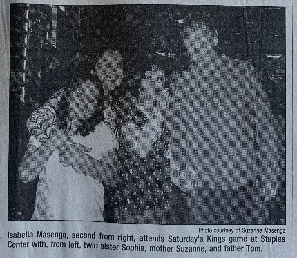 Isabella Masenga, whose parents call her Bellie, was almost 10 years old when she asked if they could take her to a Los Angeles Kings’ hockey game at Staples Center. They didn’t even realize she knew hockey existed.