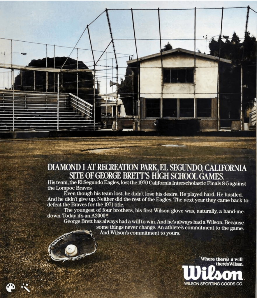 The 12-acres of Recreation Park at Grand Avenue and Eucalyptus Drive in El Segundo has volleyball courts, a paddle tennis court and a roller hockey rink. But it is known for all its baseball field since the 1950s. It became the home of John Stevenson Field, so named in 1992, where the high school Eagles play, and George Brett Field, named in 1999 where the Little Leaguers play.