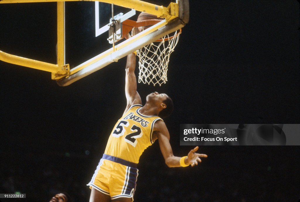 On the Lakers’ 1971-72 title team that ran off a 33-game win streak, fans were pretty happy that Harold Hairston, who came over in a deal with Detroit for the ’69-’70 season, was in the starting lineup with Wilt Chamberlain, Jerry West, Gail Goodrich and Jim McMillian (who replaced the retiring Elgin Baylor). Six of Hairston’s 10 NBA seasons were in L.A., through his retirement at 32 when the team waived him prior to the 1975-76 season. Hairston had a 29-rebond night for the Lakers in December of ’73 (to go with 20 points) and also had multiple 20-rebounds or more nights for the Lakers. A career-high of nine assists also happened in December of ’73. Two seasons after the Lakers released him, Wilkes came in to fill No. 52.