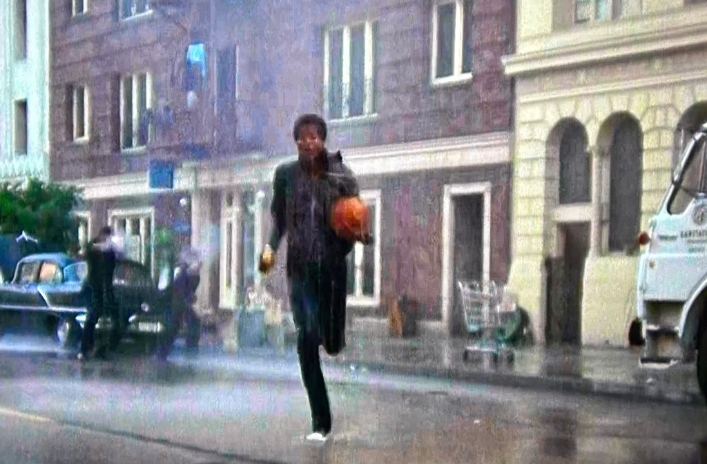 A couple of local hoodlums interrupted and confronted Cornbread about throwing away drugs that had been stashed in the locker room. Cornbread ended up showing his ability to fend off a knife attack with the help of his basketball.