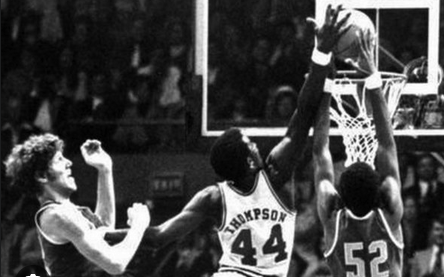 One of the images left from that game is of Thompson blocking a shot of Wilkes’ as Walton is pushed away.