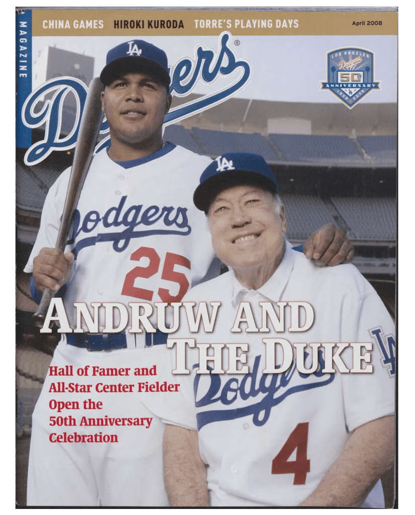 Jones had notorious poor conditioning and was living off his past when, by May 25, he was on the disabled list for the first time in his MLB career, injuring his knee in batting practice. He tore cartilage. His season was done when he was put on the 60-day DL on Sept. 13. The end result was the Dodgers making a deal to add Manny Ramirez at the trade deadline and promoting Matt Kemp to play center field. Jones hit only .158 in 75 games with three home runs and 14 RBI and had a -1.6 WAR in only 238 plate appearances. His 35 OPS+ tied for worst in Dodger history of the live-ball era (minimum 200 plate appearances). He missed a total of 76 games due to knee surgery as the team won the NL West and went to the NLCS without him. The Dodgers had Kemp, Ramirez, Andre Ethier and Juan Pierre for the 2009 season, leaving Jones on the outside. They reached a buyout agreement in January 2009 and Jones went on to squeeze out just as miserable seasons in Texas, Chicago and New York, plus Japan, as the Dodgers kept paying him through 2014. Maybe the Braves retired his No. 25 in 2023 but he wasn’t happening in L.A. In 2012, was arrest for domestic battery when he attached his wife and threatened to killer her. He pleaded guilty, was fined and given probation. That apparently didn’t matter much any longer as Jones was voted into the Hall in his ninth year of eligibility in 2026.