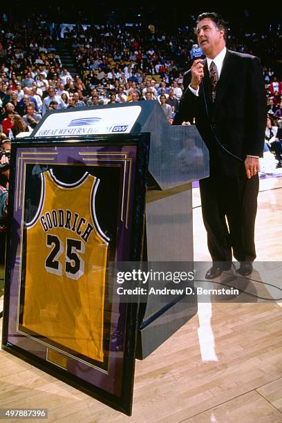 Goodrich was the team’s leading scorer and fifth in the league when he averaged a career-best 25.9 points a game on a Lakers’ team that ran off the 33-game win streak and an NBA-best 69-13 record. Goodrich also led the Lakers in scoring during their five-game NBA Finals series against New York at 25.6 per game. His 2,145 points in the regular season was fourth in the NBA.