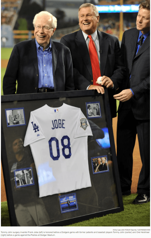 “If the Tommy John procedure remains the Mona Lisa of sports surgeries, as Times sportswriter Chris Dufresne once declared, then Jobe’s landmark 1990 operation to rebuild the right shoulder of then-Dodger Orel Hershiser could be enshrined down the hall in the Louvre,” it said in Jobe’s Los Angeles Times obituary.