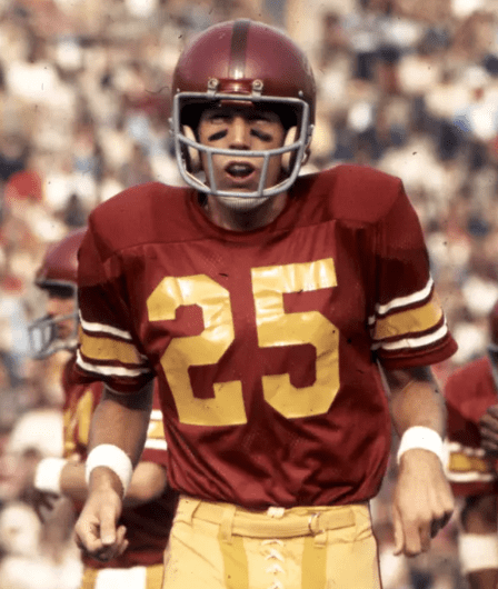 As the son of legendary USC football head coach John McKay, it was easier for John Kenneth McKay to go by the name “J.K.” The co-MVP of the Trojans’ 1975 Rose Bowl win (with teammate Pat Haden, his former Bishop Amat High c0hort who threw him a 38-yard touchdown pass in the contest) was on two national title teams and inducted into the Rose Bowl Hall of Fame in 1998.McKay also wore No. 25 (and No. 23) in his only season with the World Football League’s Southern California Sun. His Southern California football career continued as general manager for the one and only season of the XFL’s Los Angeles Xtreme (2001, as it won the league title) and then he became Senior Associate Athletic Director at USC in 2010 under head AD Haden.