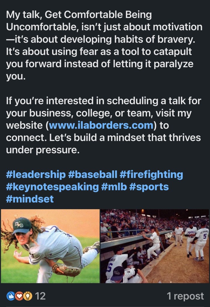 When Borders decided her pitching days were done, Borders recalled how the Costa Mesa Fire Department members would come to watch her play in college, and “that has a profound affect on me,” she would write in her book. “Now I wanted to be that firefighter.”