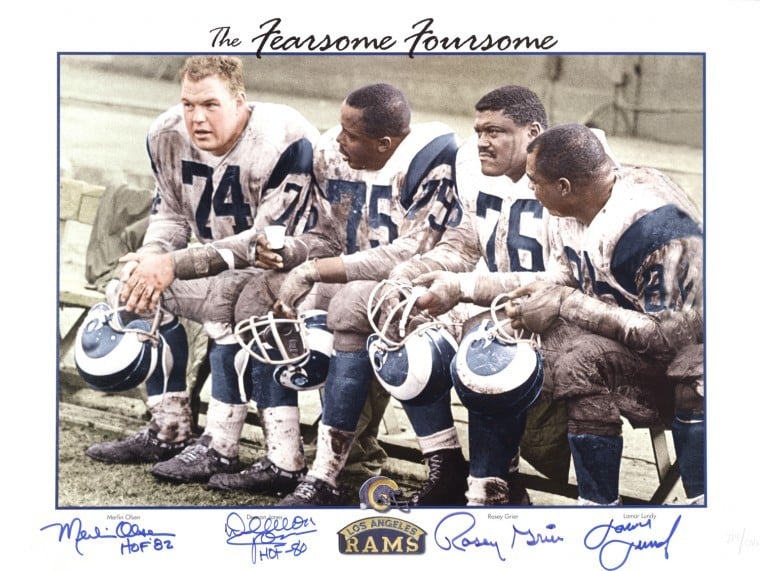 The OG “Fearsome Foursome” LLC of Los Angeles Rams defensive linemen Lamar Lundy, Merlin Olsen, David “Deacon” Jones and Rosey Grier reigned controlled terror on the Coliseum turf together for just four seasons.