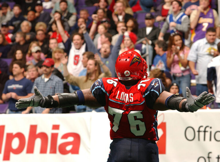 “I didn’t see or hear anything that was different than what I’ve seen a million times,” Avengers coach Ed Hodgkiss said at a press conference the next day. Lucas twisted his neck, fell unconscious and never got up. Attempts to revive him failed. After he was taken to a local hospital and pronounced dead, the team wasn’t informed until after the game, which the Avengers won, 66-35. Lucas, who was 26, was survived by his wife and young daughter. It was a rare case of a death occurring on the field during a live game. Lucas suffered an upper spinal cord injury caused by blunt force trauma, contact that seemed like a normal football play. The team retired his No. 76 the next season and several memorial funds were set up in his honor by his alma mater, Troy State in Georgia, and other organizations. The AFL Player of the Year and Hero Award were named in his honor. In 2004, Lucas led the Avengers with 18.5 tackles, three sacks, three fumble recoveries and a safety. Going into that Week 10 game against New York, Lucas had made nine tackles and four assisted tackles that ’05 season.