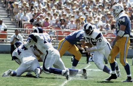 On the left side, Deacon Jones (6-foot-5, 272 pounds) was the defensive end since 1961, and the next season, Merlin Olsen (6-foot-5, 270 pounds) came in at defensive tackle out of Utah State and was named the NFL Rookie of the Year.