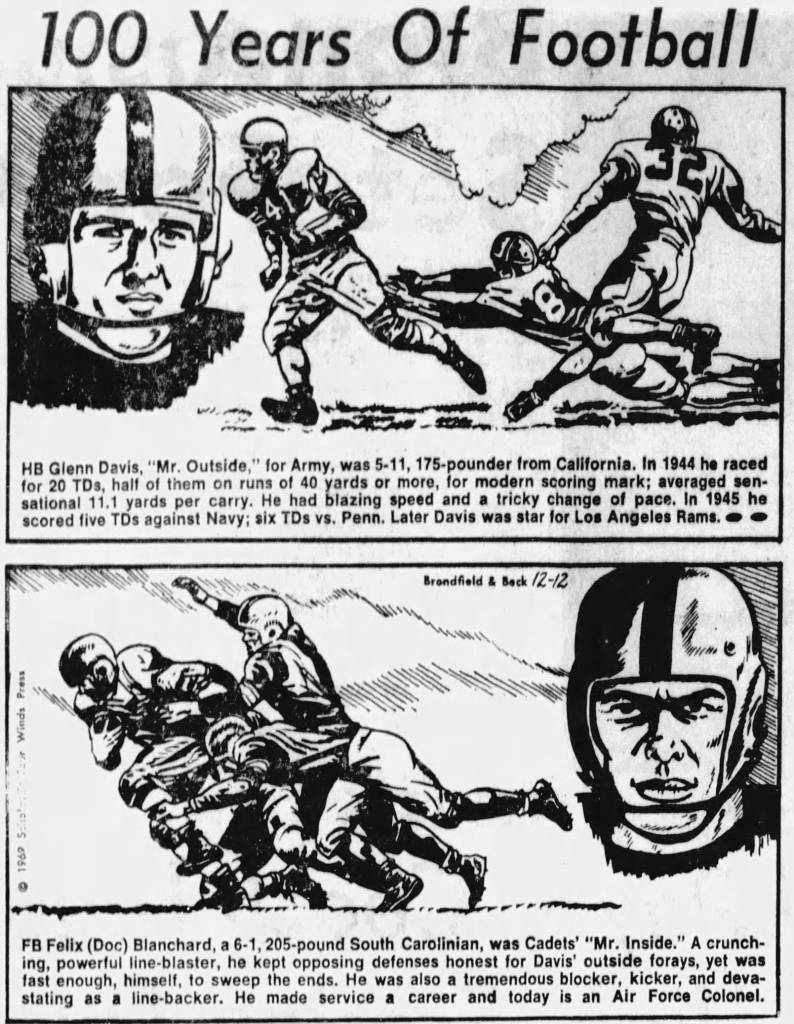 In the first of three All-American selection seasons, Davis finished second and Blanchard was third in the Heisman voting, behind winner Les Horvath, the senior halfback/quarterback from national champion Ohio State. Horvath would precede Davis in playing two seasons for the Los Angeles Rams (1947 and ’48), wearing No. 12.