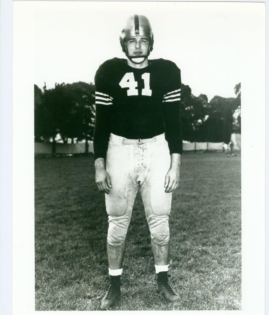 “I was a linebacker and fullback in football,” he once told the L.A. Times. “We played St. Anthony of L.A. in the football championship game at the Coliseum, but we lost because they had more first downs. Then we played in the baseball championship game at the old ballpark (Lane Field) in San Diego. I hit a home run, but we lost that one, too.”