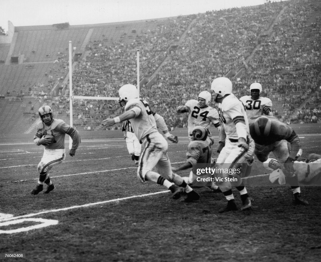 He would join the star-studded Los Angeles Rams for the 1950 season and kept wearing No. 41 once his obligation ended. Now listed at 5-foot-11 and 171 pounds at age 25, and despite the residuals of that knee injury, he was named to the Pro Bowl after a season where he ran for 416 yards on 88 carries and caught 42 passes for 592 yards, combining for seven touchdown.