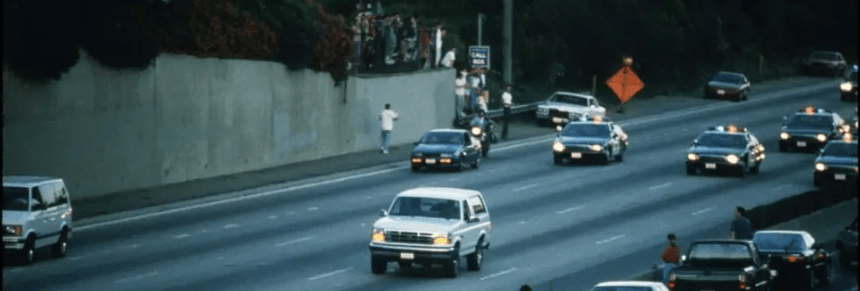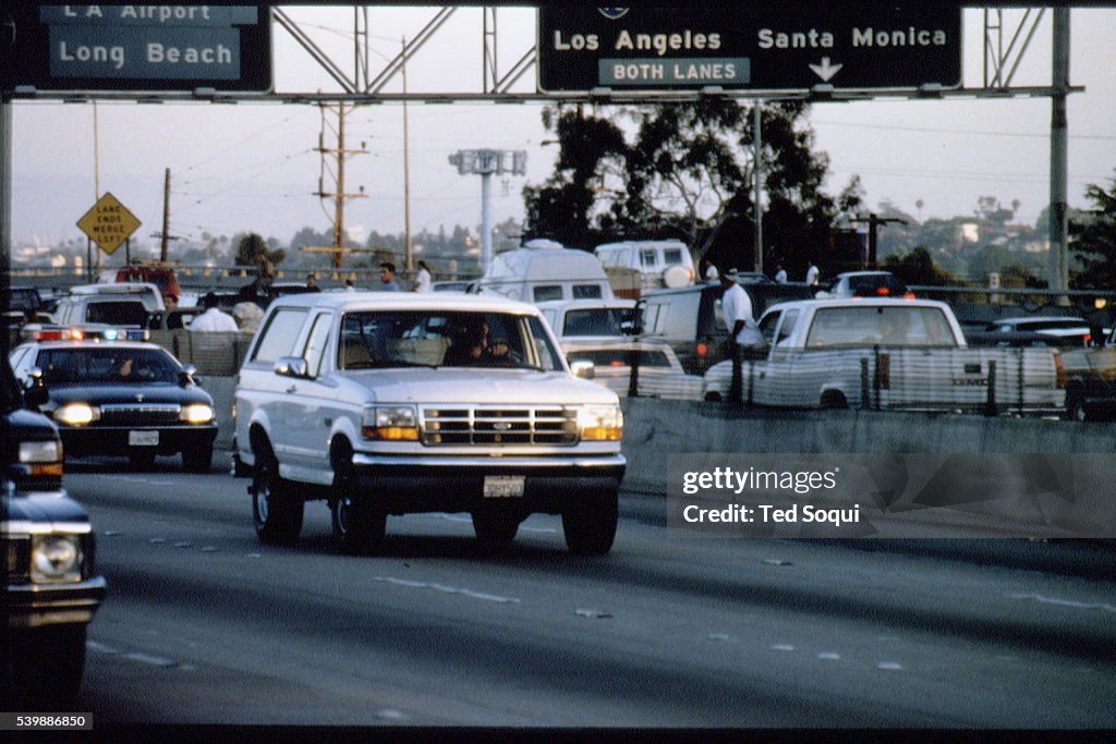 Simpson was reportedly making 911 calls from a cellphone in Cowlings’ Bronco as the two were on Interstate 5 in Orange County near Lake Forest, having left the gravesite where his ex-wife was buried days earlier.
