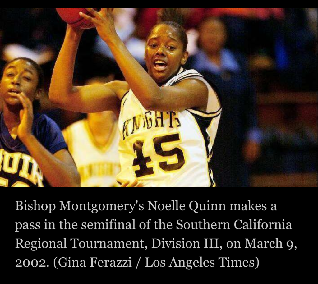 Noelle Quinn, Bishop Montgomery High guard (1998-1999 to 2002-03); UCLA women’s basketball guard (2003-04 to 2006-07), Los Angeles Sparks guard (2009 to 2011):