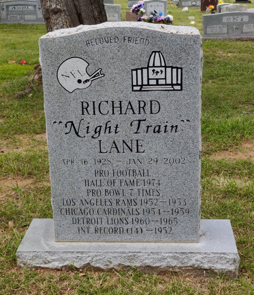 In a 2002 obituary for the Los Angeles Times, longtime NFL writer Bob Oates, who covered pro football in L.A. newspapers for 60 years, wrote about Lane: “He was far and away the greatest pass interceptor of all time. When I think of him, I think of how far in the air he used to get to make his interceptions. I’d never seen a defensive back who could jump as high as Night Train. He could play today and be All-Pro.”