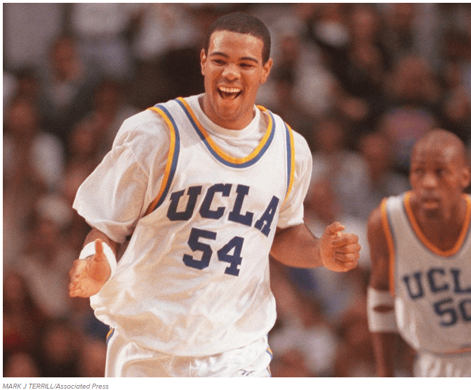 A natural to go to UCLA, the 6-foot-4 Kris Johnson made it through 112 games in four seasons from that 1994-95 title team through 1997-98. He averaged 11.6 points, 3.7 rebounds and 1.2 assists. As a junior, he led the team with an 83.5 free throw percentage.
