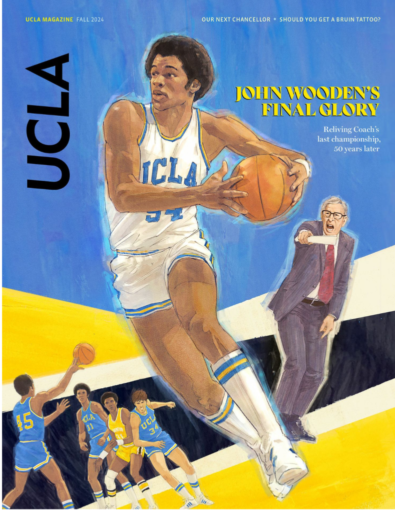 For a UCLA magazine story recalling the 50th anniversary of Wooden’s last title run, Johnson remembered how he had been in the den of his parents’ house and just watched on TV how Bill Walton score 44 points in UCLA’s 1973 championship game win over Memphis State.