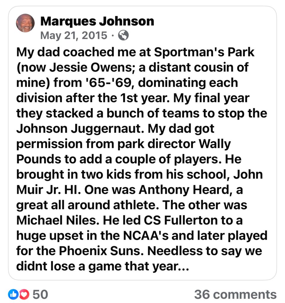 When Marques Johnson arrived at Crenshaw High, Jeff Johnson was an assistant under Willie West. Johnson averaged 26.4 points and 18 rebounds a game for teams that went 32-0 in his last two seasons. Johnson easily took the honors of L.A. City 4A Player of the year in 1973. He did it wearing No. 35 — he admired UCLA’s Sidney Wicks.