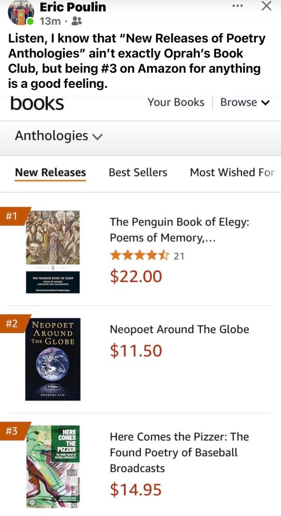 Eric Poulin, who had the creative itch during the COVID pandemic lockdown to dream up and compile what has become “Here Comes the Pizzer: The Found Poetry of Baseball Broadcasts,” put on a poetically dynamic presentation last March at the NINE convention in Tempe, Ariz., channeling his inner Ralph Kiner Waldo Emerson in a performance art immersion that went far beyond what he was trying to achieve with this project.