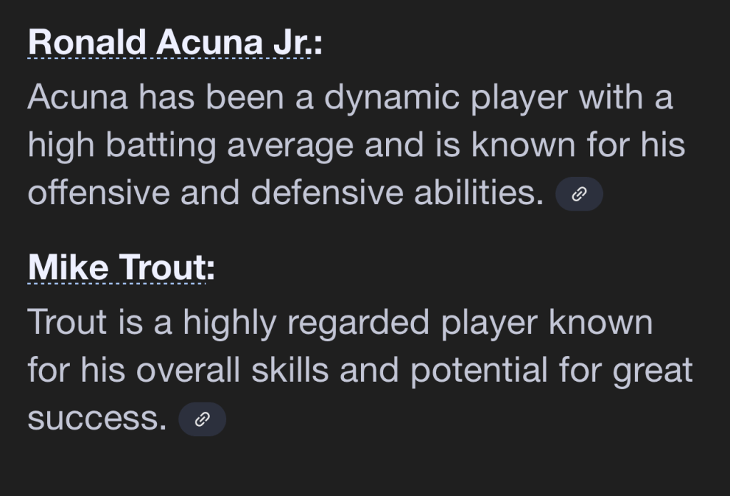 From his template, Reuter rooted out 15 “superstars” who checked all the boxes, which are, and in alphabetical order: Ronald Acuna Jr., Jose Altuve, Mookie Betts, Gerrit Cole, Freddie Freeman, Vlad Guerrero Jr., Bryce Harper, Aaron Judge, Francisco Lindor, Manny Machado, Shohei Ohtani, Corey Seager, Juan Soto, Fernando Tatis Jr., and Mike Trout.