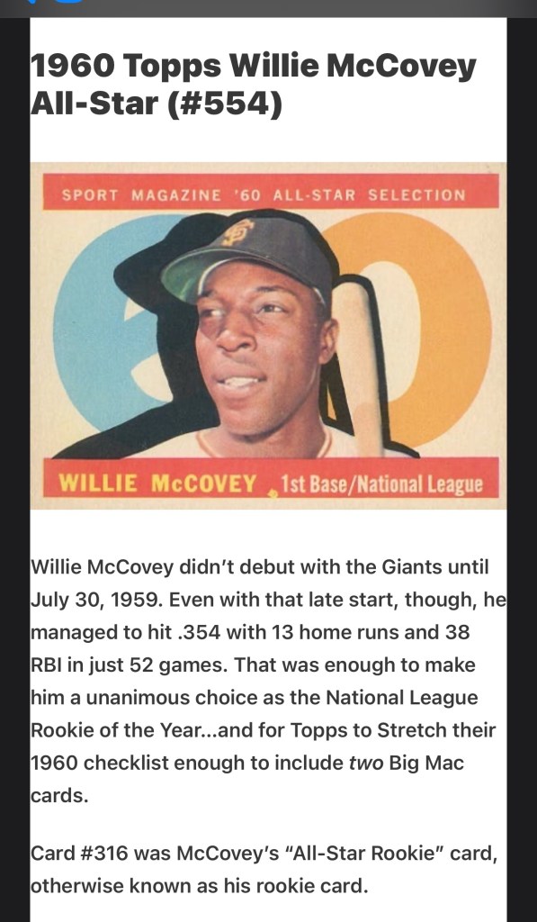 == More on Williams from his 2008 biography with Fred Mitchell (Triumph Books). More on McCovey from a 1988, 28-page photo book from Woodford Publishing called “Stretch.“