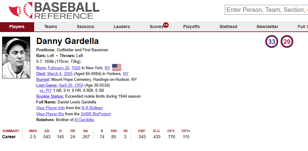 == Gardella’s SABR bio by Charlie Weatherby at this link.