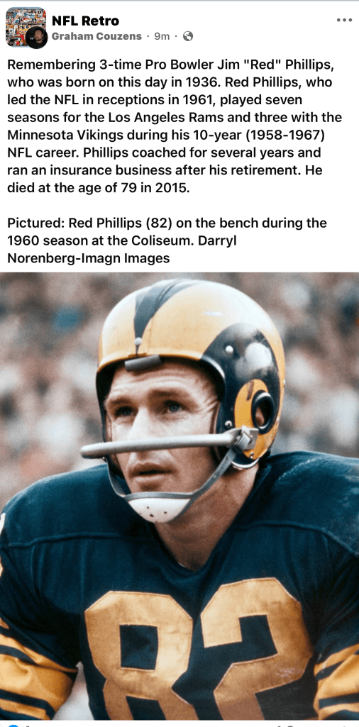 Red Phillips, Los Angeles Rams end/flanker/tight end (1958 to 1964):