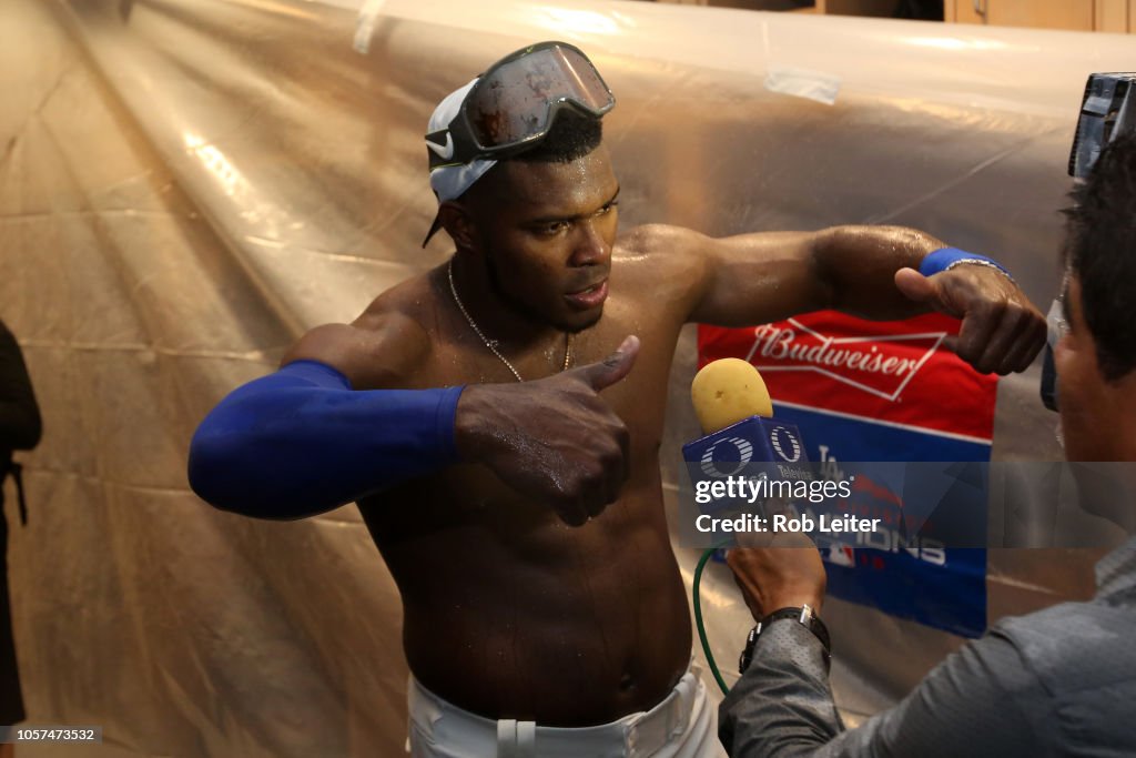 Puig hit .455 in the NLDS (5-for-11 with a double and triple in a three-game sweep of Arizona) and .389 in the NLCS (7-for-18 with a homer, six runs scored and 11 total bases in a four-game series win over Chicago).