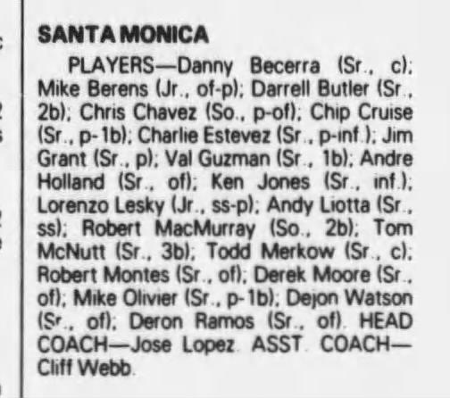 Jose Lopez, the Santa Monica High baseball coach in 1983, was kind enough to once tell the Los Angeles Times that Estévez was his “bullpen ace” … very, very efficient … an outstanding athlete … with me, a model kid.”