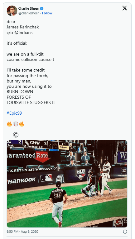Ricky Vaughn, a role Sheen played as the steel-focused wild-child relief pitcher in the 1989 film “Major League,” amplified his Hollywood persona. It would have a notable ripple effect within the culture of Major League Baseball bullpens. Art reflecting life reflecting relief artists. All the way down to wearing No. 99 for some psychological advantage when staring down a tepid hitter in the late innings.
