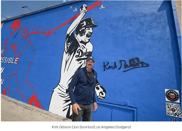 In 2023, street artist Corie Mattie unveiled a mural in the Atwater area of L.A. — on the wall of Bill’s Liquor store on Glendale Blvd. — to honor Gibson as well as his foundation, which incorporates the No. 23 at the center of its logo.