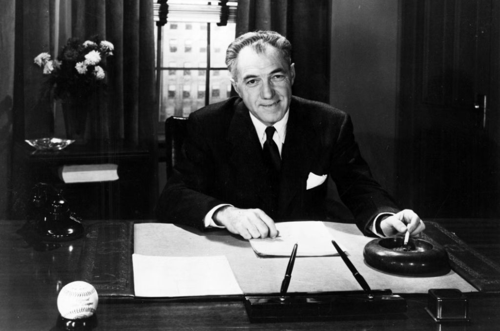 Frick, who retired as commissioner at age 71 and died 12 years later in 1978, was remembered in the New York Times as “unflappable” during the time he presided “over a revolutionary era in baseball.” Frick’s reign included having to step in and threaten St. Louis Cardinals players with banishment if they went through on a strike to protest playing against Dodgers’ newcomer Jackie Robinson in 1947.